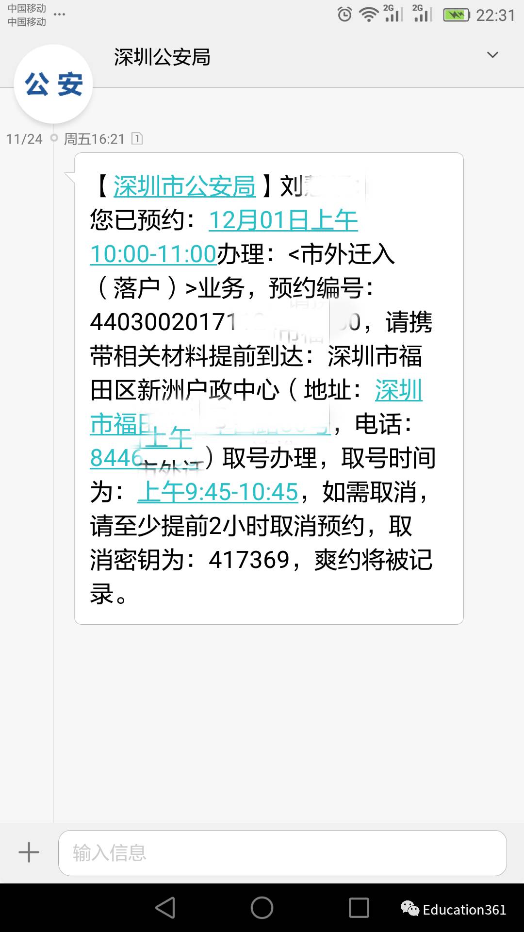 在最后一步发生了一件很奇妙的事,应该值得一提。在大厅等候排队时,有个美眉走来,坐在我旁边问我:“你好,美女,请问一下来这是不是要提前在网上预约啊?”我答:“是呀,我都是提前大概一个星期预约,因为现在预约大概要排队到下个星期,人多的话可能还要在靠后。”她很惊讶,表情很后悔的样子。我也好奇就问她是自己办的还是走的中介,她说她刚买房,现在急着办户口。我惊讶极了,因为她真的是美眉,皮肤细嫩细嫩的水亮水亮的,化妆得体,长发飘飘,身材纤细,穿着打扮绝对简单而又高大上,手提包也很名牌,看样子比我年轻太多。她都已经买房了啊。。。关键是这是深圳啊,关键是她还很年轻啊。我也没敢多问,就告诉她预约的电话号码。然后她纤声细语地打电话预约。预约好后她说声谢谢,然后离开。走到前台她还是又问前台服务员能否不预约现在排队等候,前台的帅哥告诉她这个不可以,必须提前预约,预约的几点就要几点,而且爽约的话要被记录。下图。